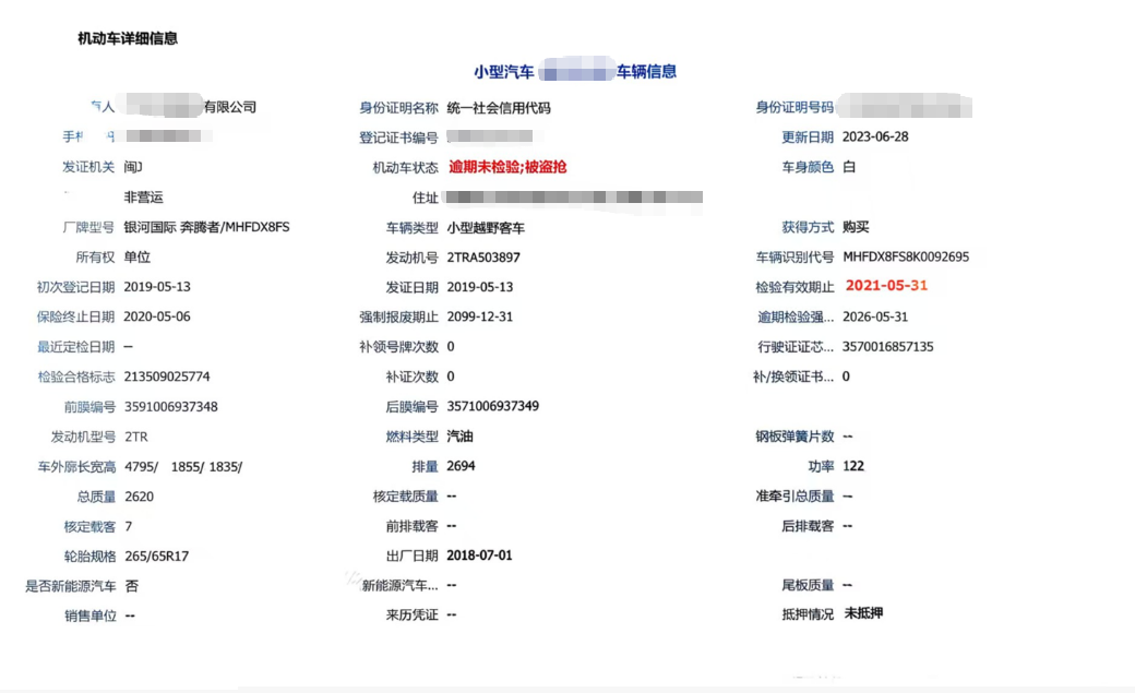 车架号是否受损 未知 使用性质 非营运