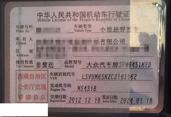 车牌号 藏****** 品牌 大众
