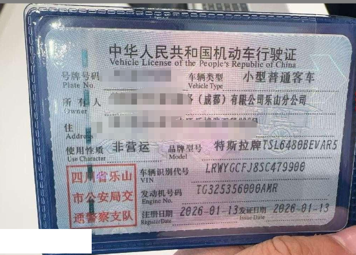 初次登记日期 2026-01-13 车辆名称 特斯拉 Model