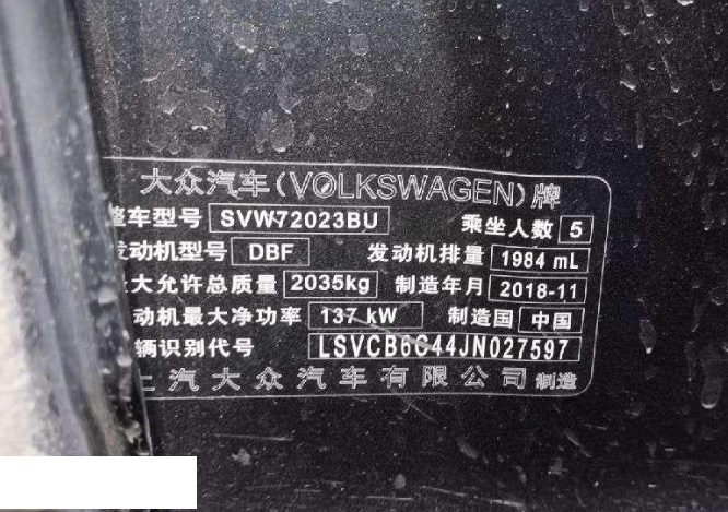 初次登记日期 2019-01-21 车辆名称 大众 帕萨特