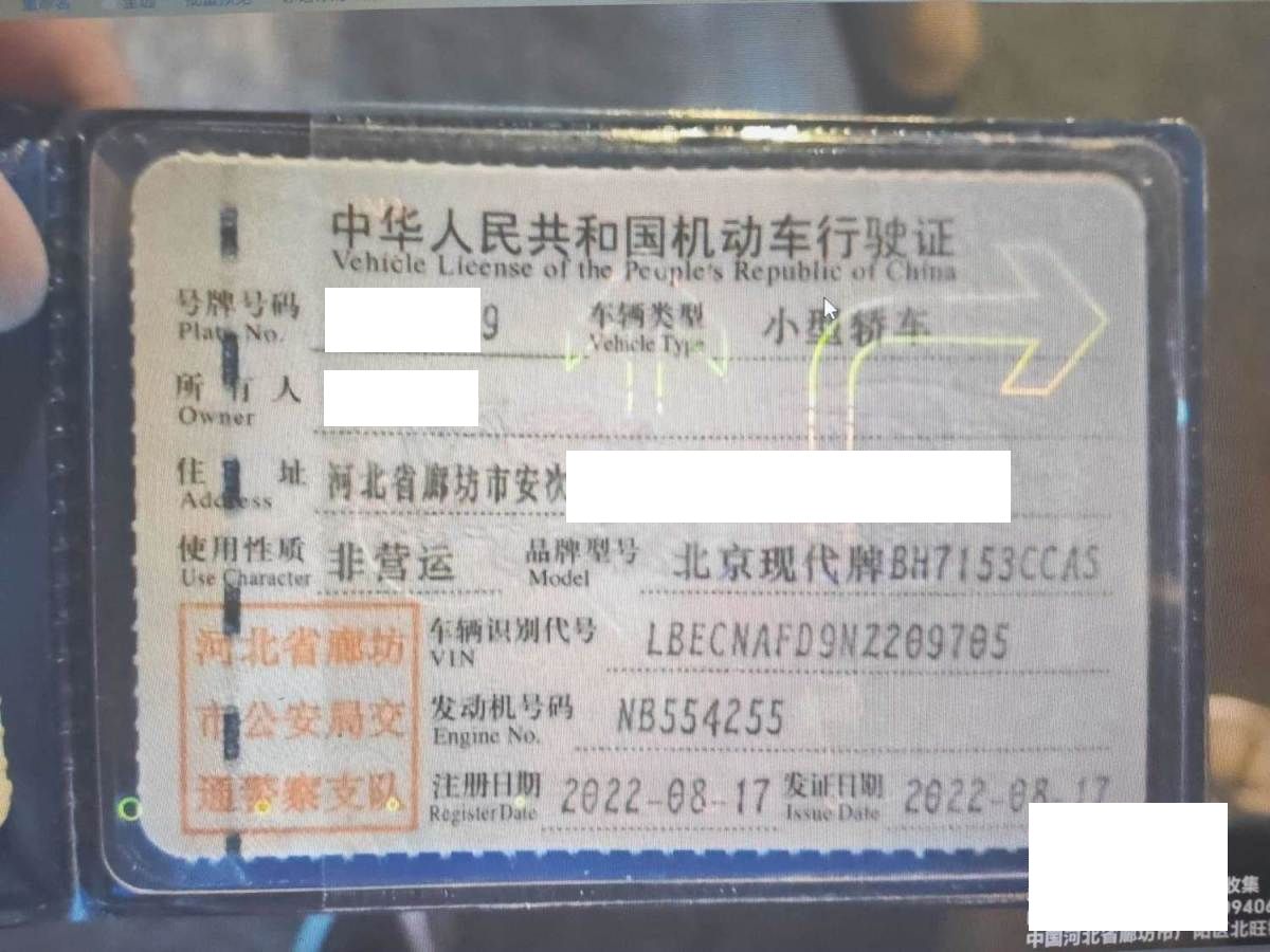 车牌号 冀****** 品牌 现代