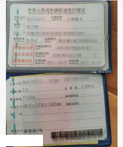 初次登记日期 2021-10-27 车辆名称 埃安牌