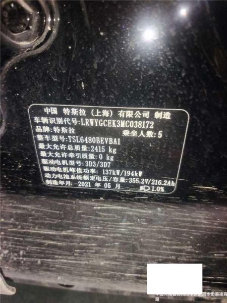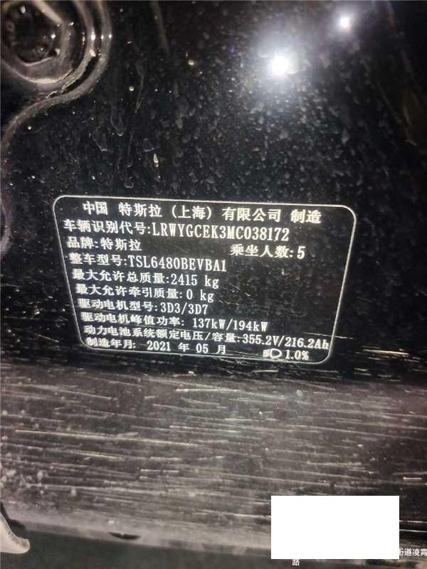 初次登记日期 2021-06-22 车辆名称 特斯拉 Model