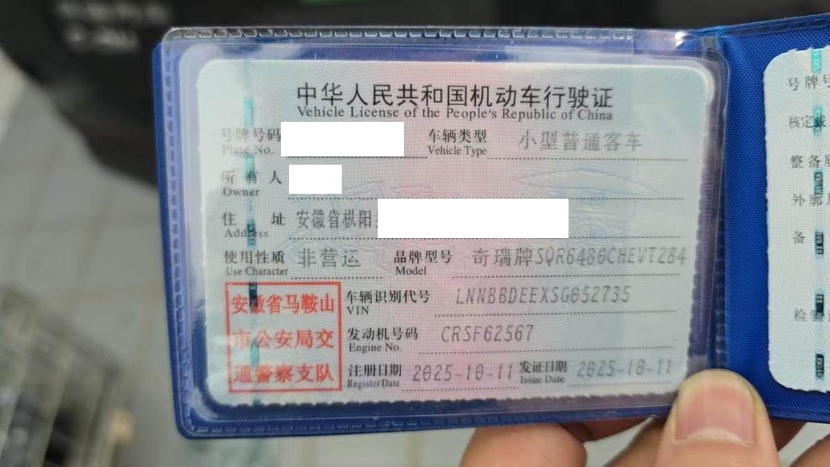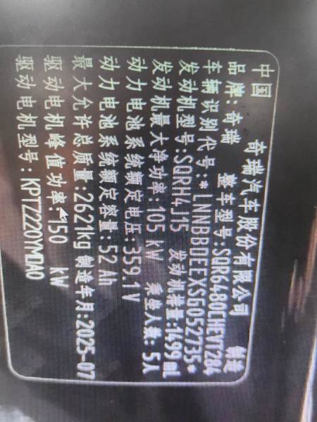 初次登记日期 2025-10-11 车辆名称 奇瑞风云