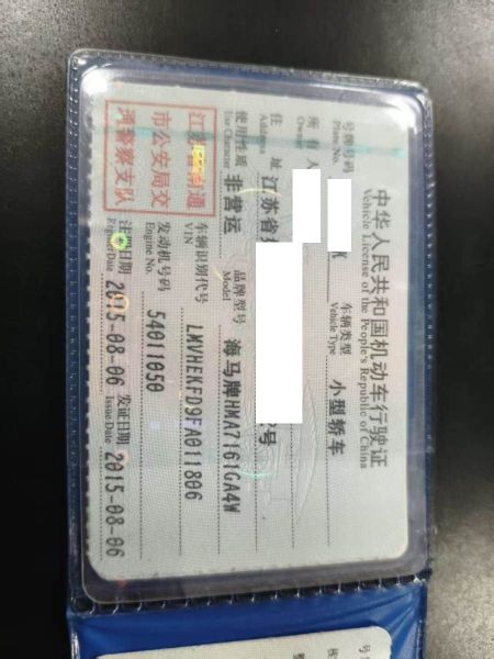 车牌号 苏****** 品牌 海马