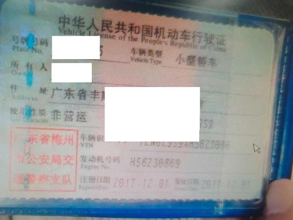 车辆归属地 广东省梅州市 车辆停放仓库 广东省广州市广州市