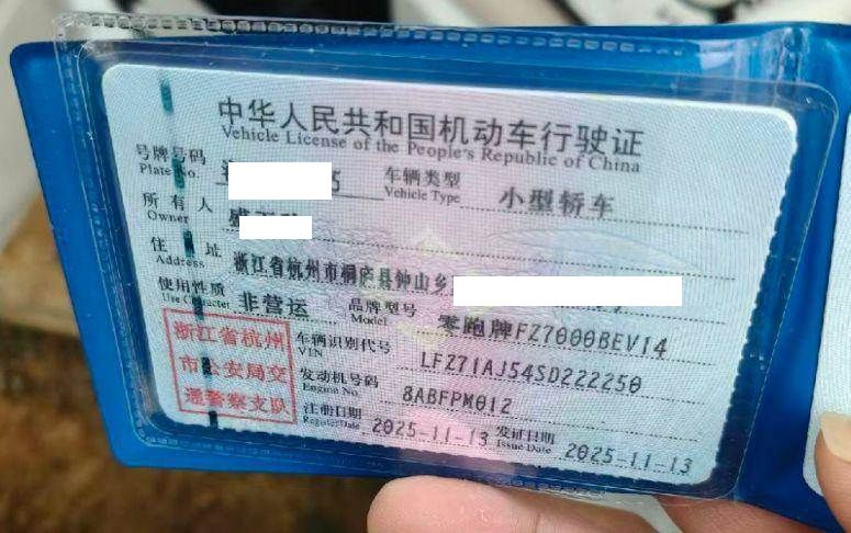 初次登记日期 2025-11-13 车辆名称 零跑汽车