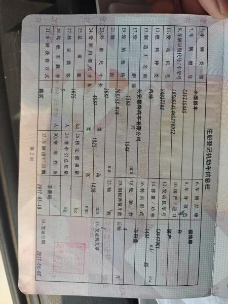底盘号码 LVSHFFAL4HS276052 变速箱类型 手自一体