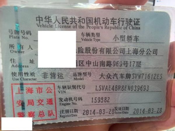初次登记日期 2014-03-28 车辆名称 大众 桑塔纳