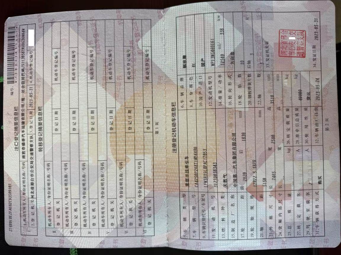 初次登记日期 2023-05-31 车辆名称 青岛解放 天V
