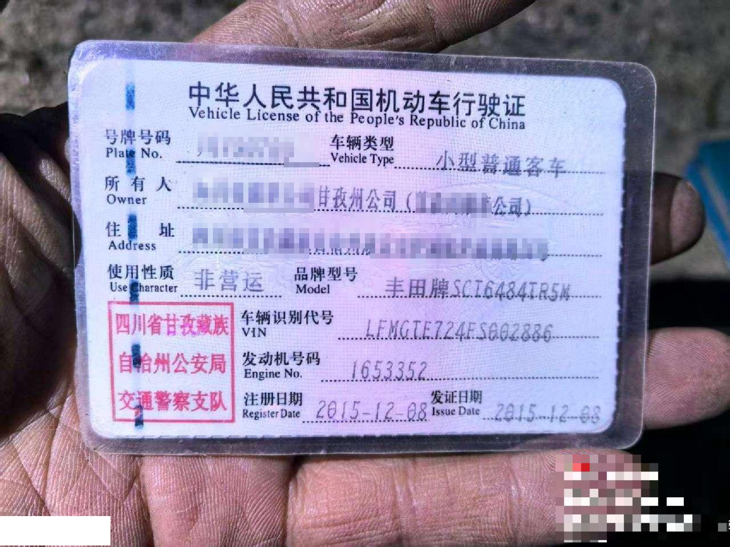 车牌号 川****** 品牌 丰田