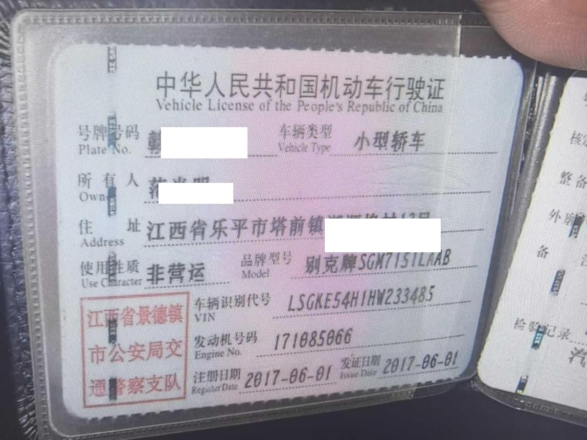 初次登记日期 2017-06-01 车辆名称 别克 英朗