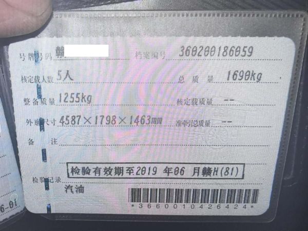 车牌号 赣****** 品牌 别克