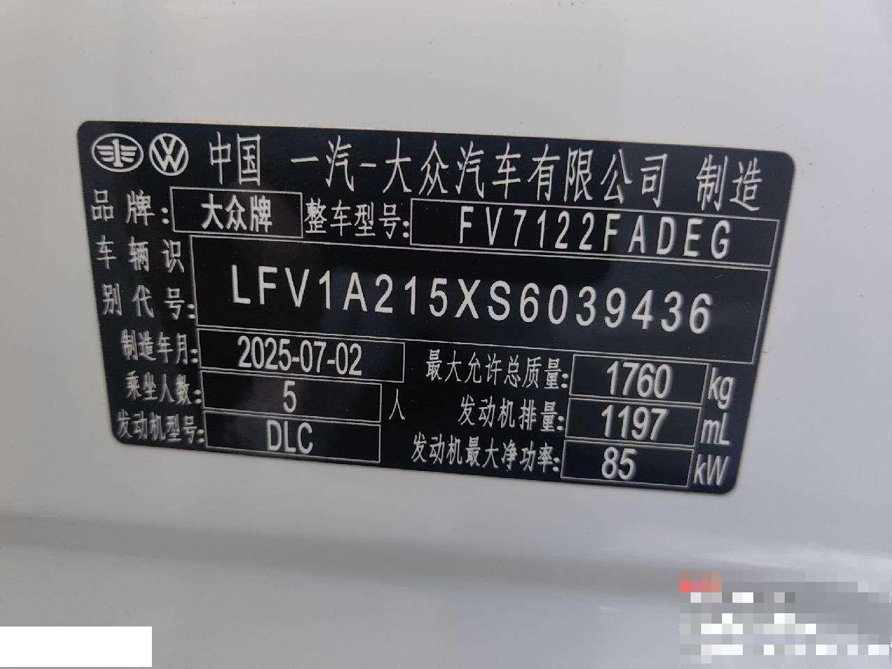 初次登记日期 2025-09-25 车辆名称 大众 宝来