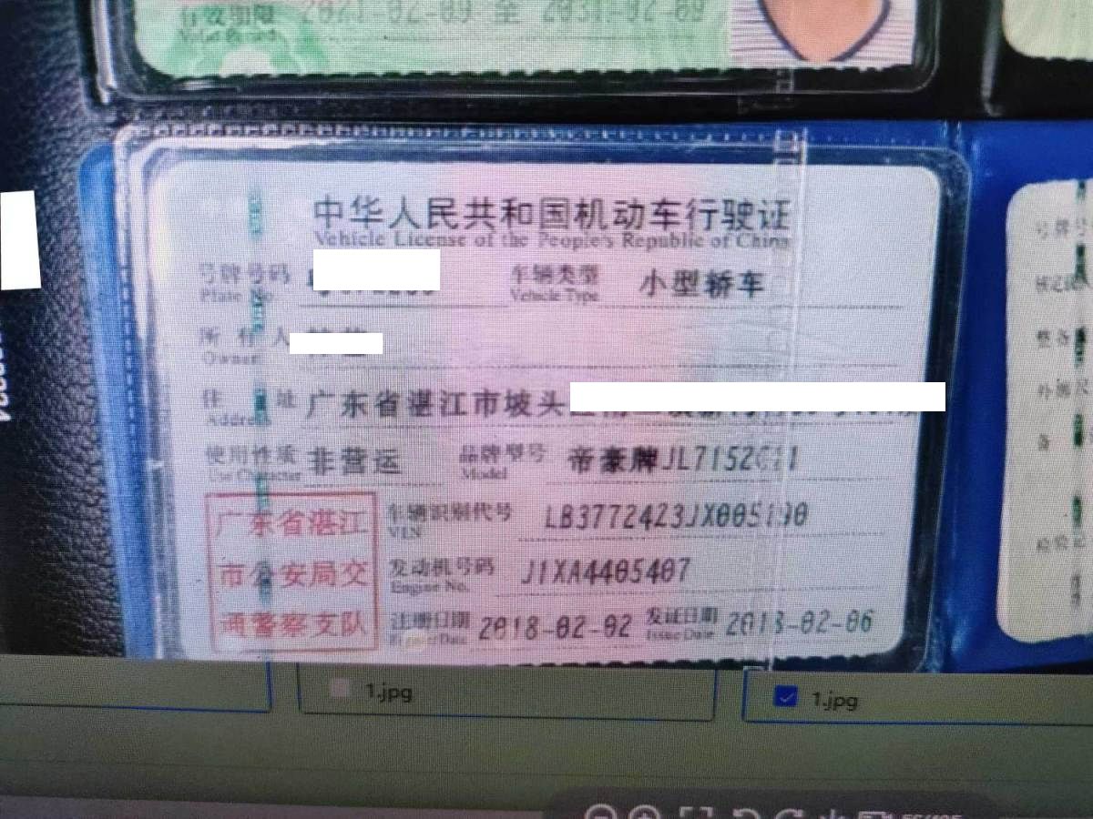 初次登记日期 2018-02-02 车辆名称 吉利汽车 远景
