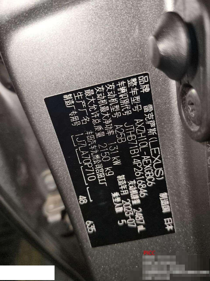 初次登记日期 2023-08-28 车辆名称 雷克萨斯ES