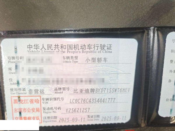 初次登记日期 2025-09-11 车辆名称 比亚迪