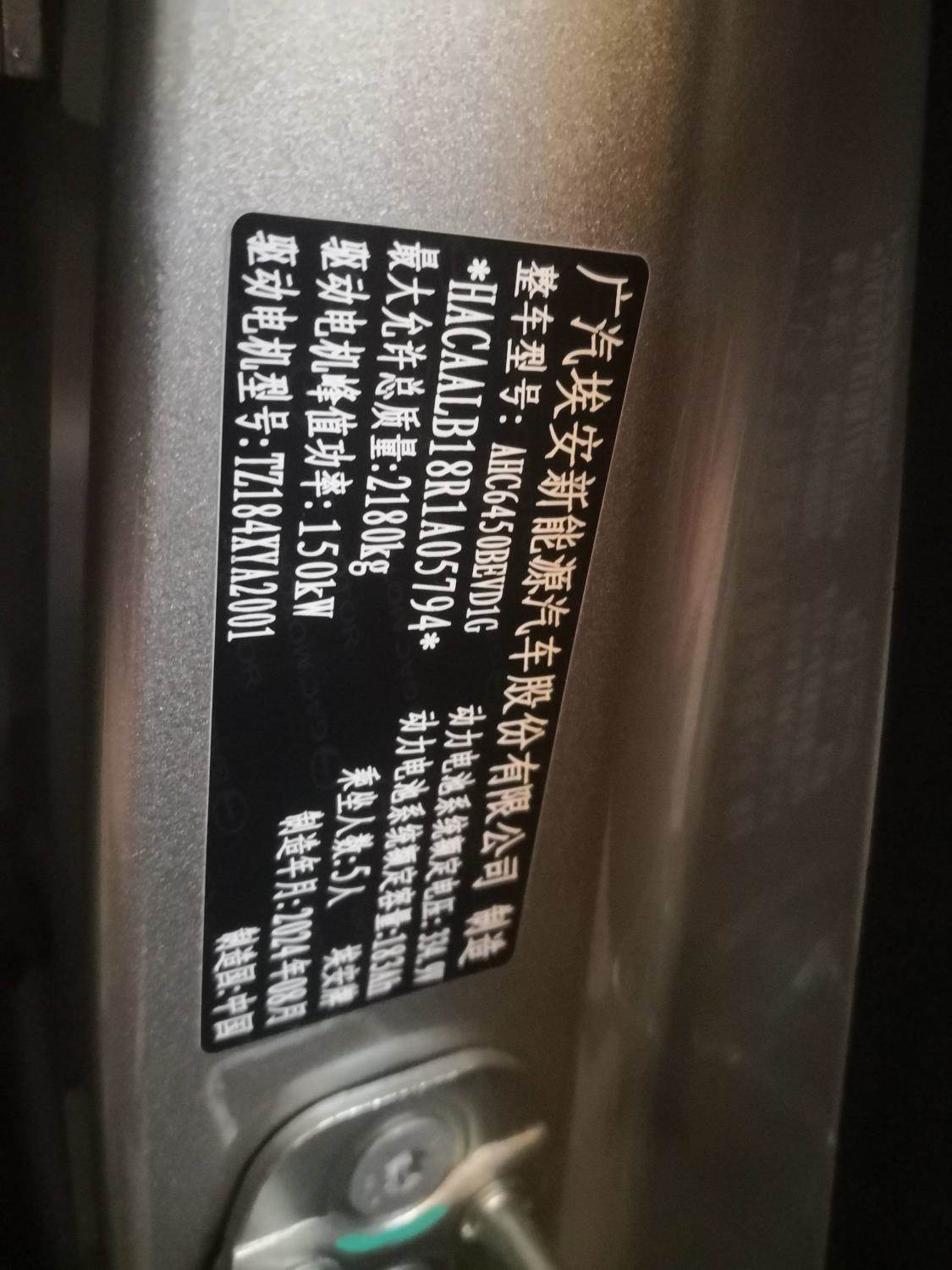 初次登记日期 2024-10-30 车辆名称 埃安 AION