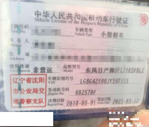 车牌号 辽****** 品牌 日产