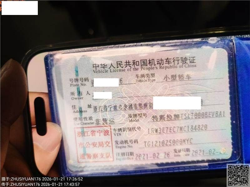 初次登记日期 2021-02-26 车辆名称 特斯拉 Model