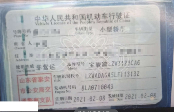 车辆归属地 山东省泰安市 车辆停放仓库 北京