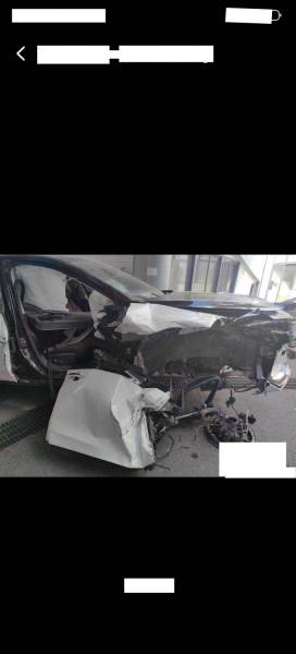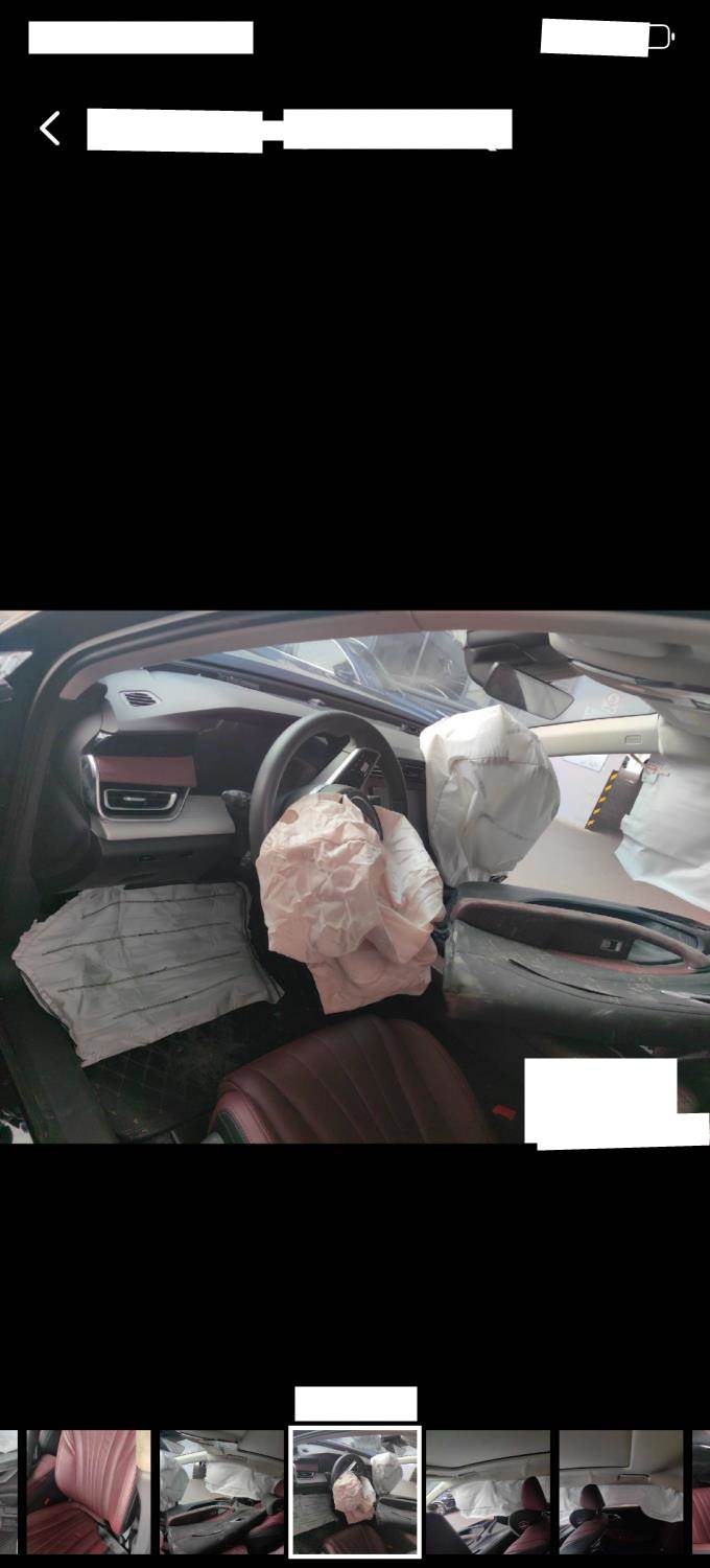右前部,右侧车身严重损坏,后部有损,多气袋爆损,内饰损,前悬挂损。发动机,变速器待待定。