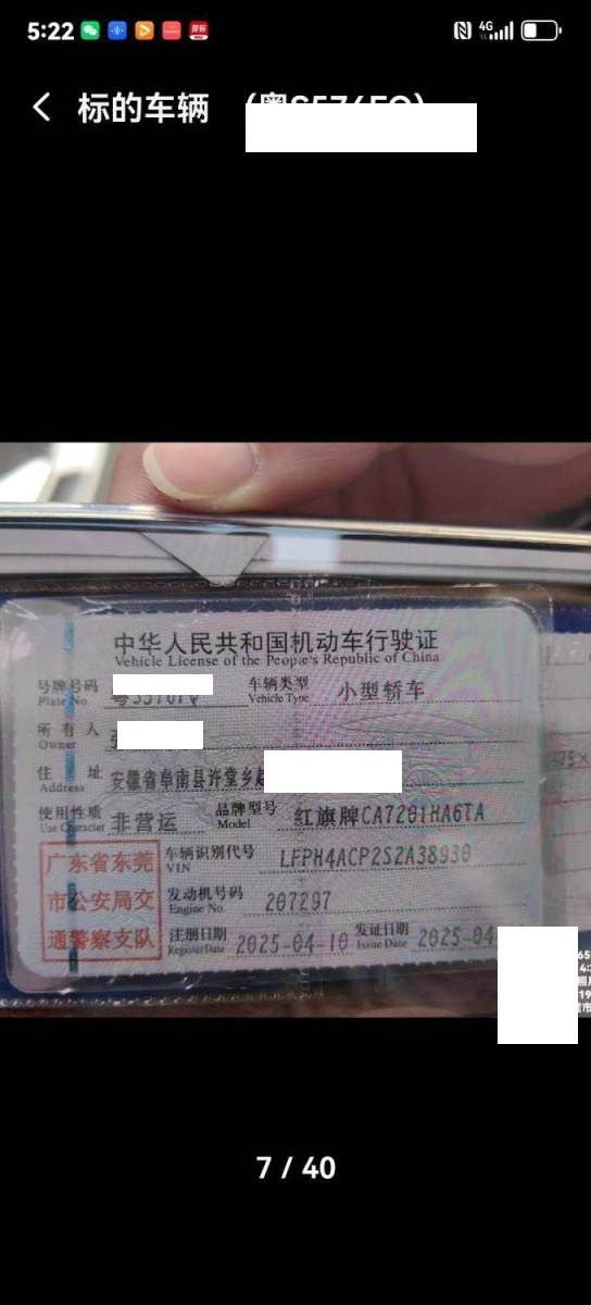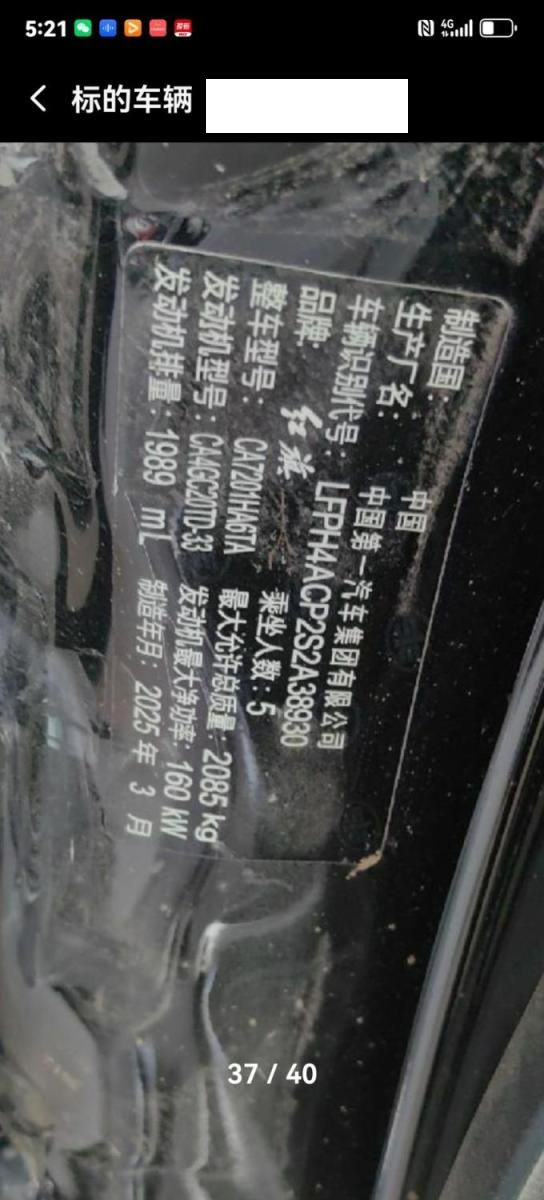 初次登记日期 2025-04-10 车辆名称 红旗H5