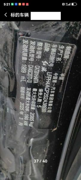 底盘号码 LFPH4ACP2S2A38930 变速箱类型 手自一体