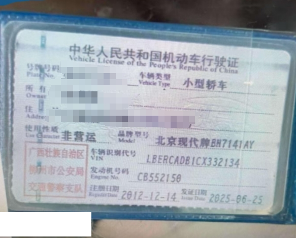 车牌号 桂****** 品牌 现代