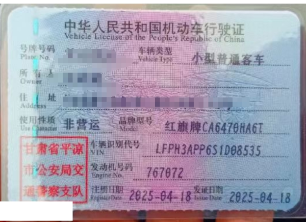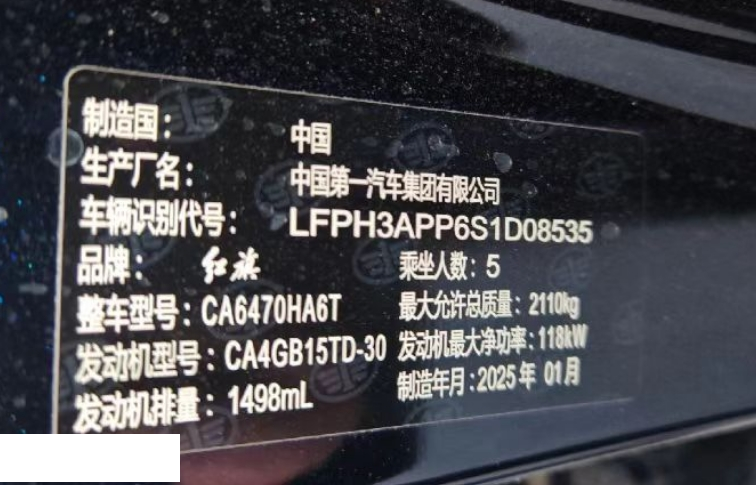 初次登记日期 2025-04-18 车辆名称 红旗牌