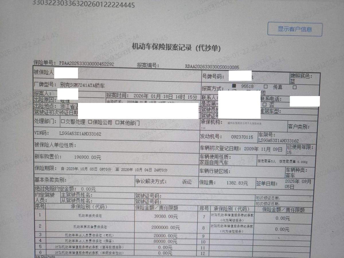 车牌号 浙****** 品牌 别克