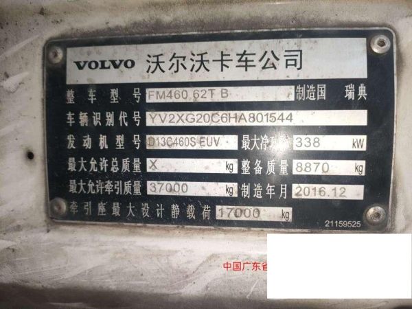 初次登记日期 2017-03-16 车辆名称 沃尔沃