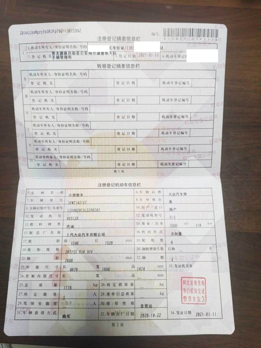 车牌号 冀****** 品牌 大众