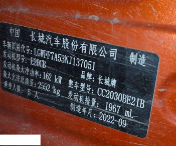 车牌号 豫****** 品牌 长城