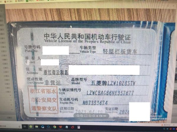 车牌号 浙****** 品牌 五菱
