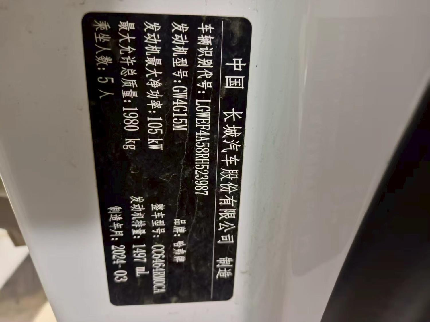 初次登记日期 2024-09-30 车辆名称 哈弗H6