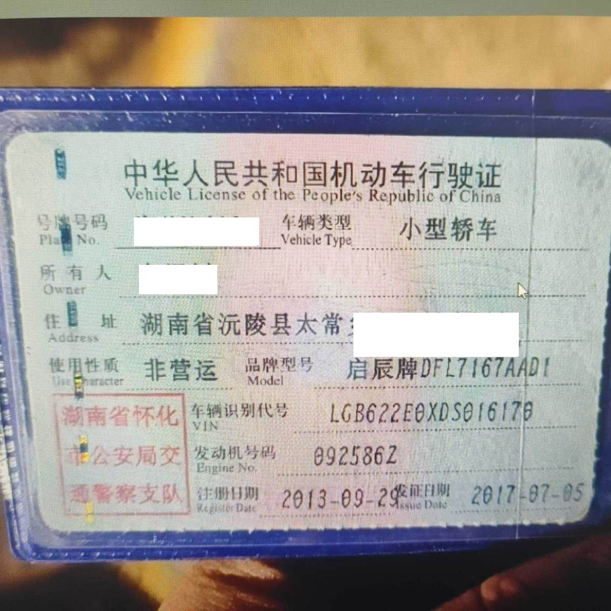 车辆归属地 湖南省怀化市 车辆停放仓库 湖南省怀化市怀化市