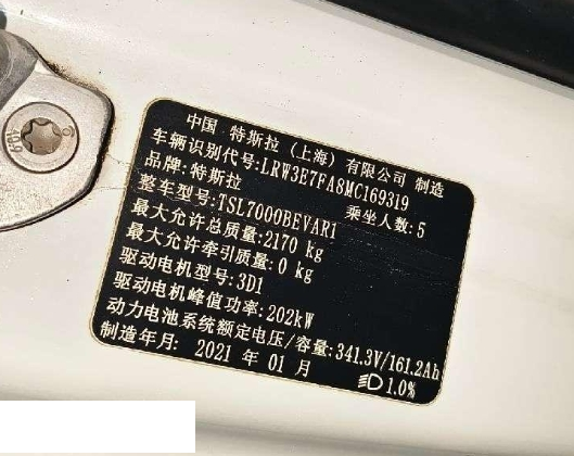 初次登记日期 2021-02-09 车辆名称 特斯拉 Model