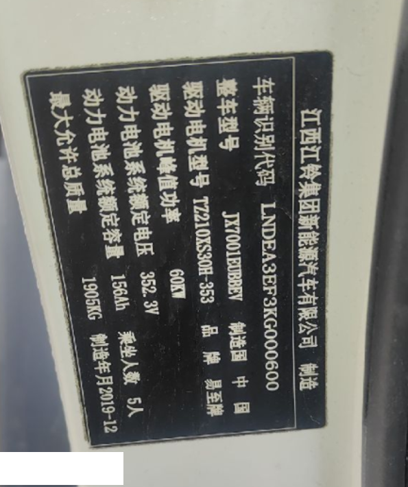 初次登记日期 2021-12-22 车辆名称 江铃集团新能源 易至