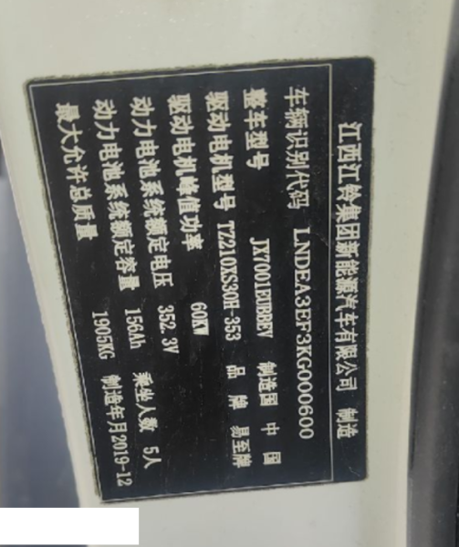 车牌号 赣****** 品牌 江铃