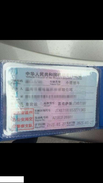 车牌号 浙****** 品牌 雷克萨斯