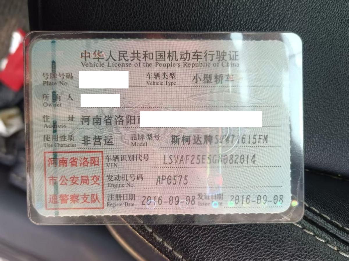 初次登记日期 2016-09-08 车辆名称 斯柯达