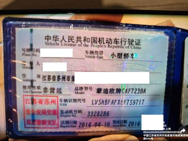 车辆归属地 江苏省苏州市 车辆停放仓库 江苏省张家港市张家港市