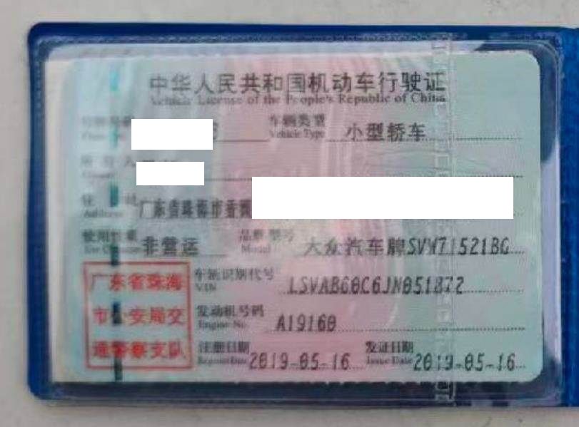 车辆归属地 广东省珠海市 车辆停放仓库 广东省珠海市珠海市