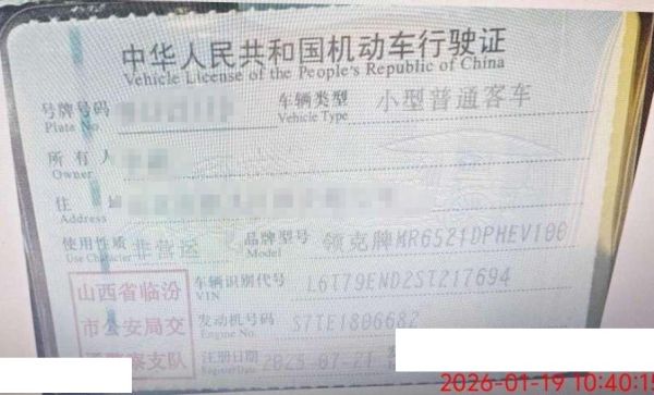 车辆归属地 山西省临汾 车辆停放仓库 北京