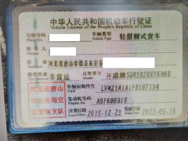 初次登记日期 2015-12-23 车辆名称 开瑞 优劲