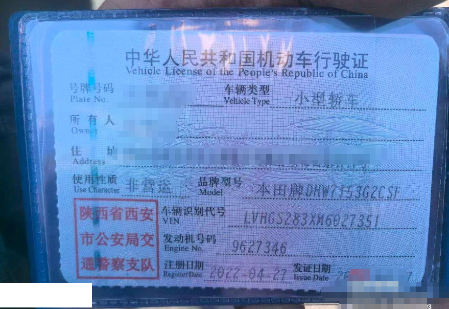 车牌号 陕****** 品牌 本田