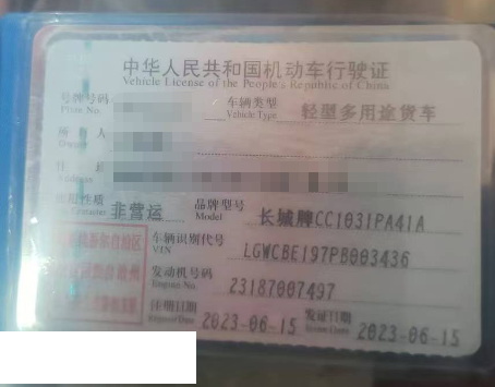 初次登记日期 2023-06-15 车辆名称 长城 风骏5