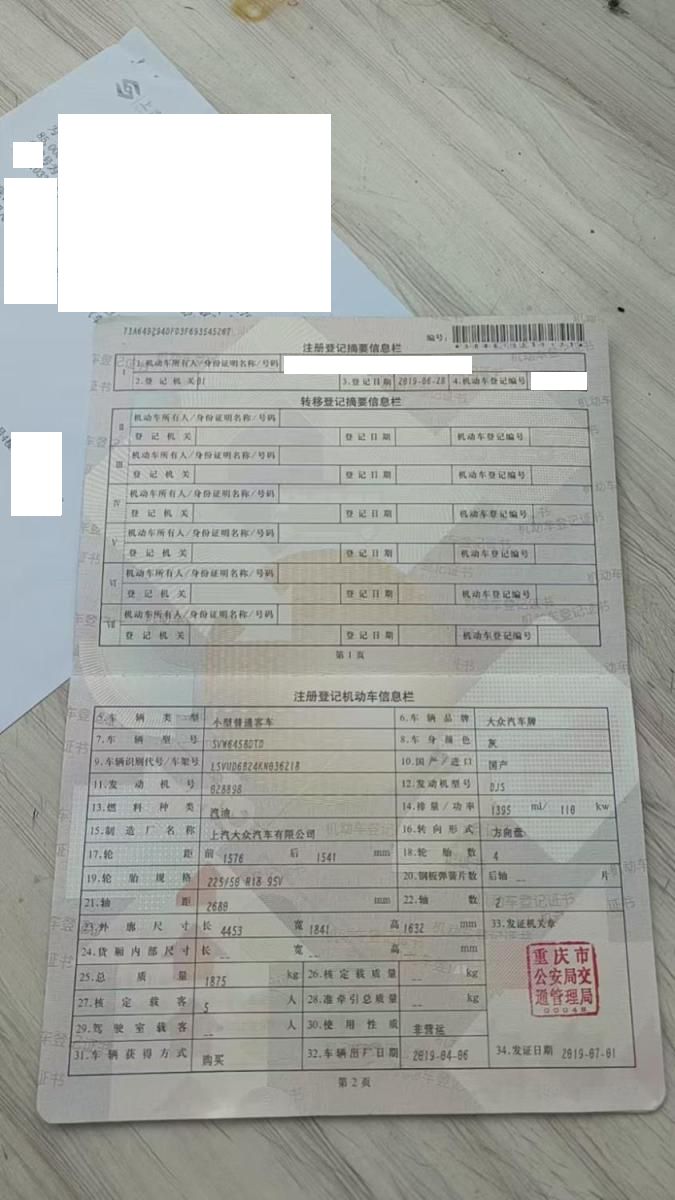 车牌号 渝****** 品牌 大众
