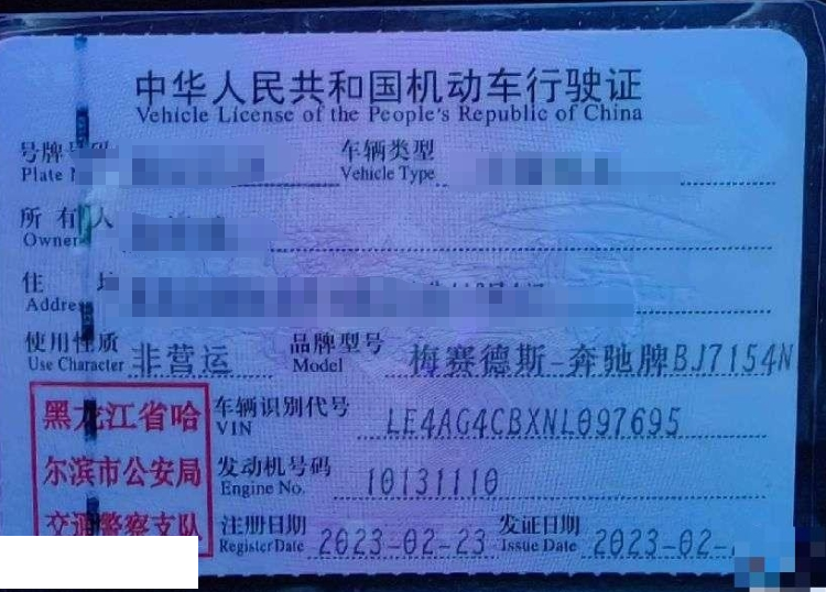 车辆归属地 黑龙江省哈尔滨 车辆停放仓库 黑龙江省哈尔滨